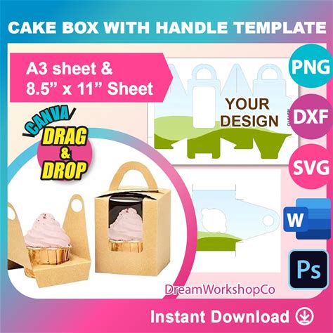 Cup Cake Gift Box, Cake Box With Insert, Cake Box Template, Cake Box With Window, Template, PSD, PNG, SVG, Dxf, 8.5X11 Sheet, Printable