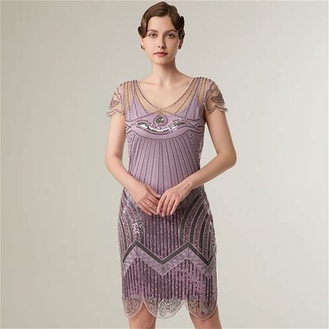 Houstil Women 1920S Sequin Dress V Neck Flapper Gatsby Homecoming Dresses Fringe Wedding Club Party Evening Gown