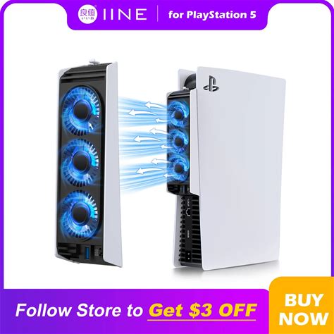 IINE PS5 Temperature-Controlled Cooling Fan Upgraded Cooler Fan With USB3.0 Hubs Compatible With PS5