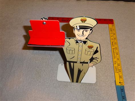 VINTAGE"" SHELL GASOLINE SERVICE STATION"" 12"" METAL OIL BUSINESS CARD HOLDER SIGN