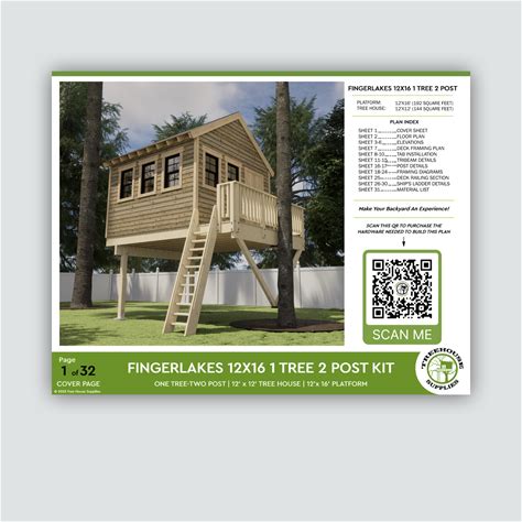 8' X 16' Rectangular Treehouse Plan | Treehouse Plans & Hardware Enclosed Treehouse