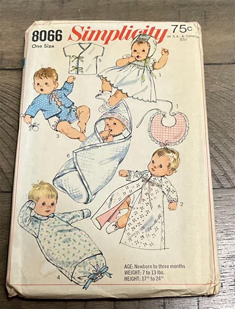 Simplicity 8066 Sewing Pattern Newborn Layette Scalloped Dress Hat Kimono Sleeper Diaper Shirt Sacque Pants Bunting Bib Newborn - 3 Months