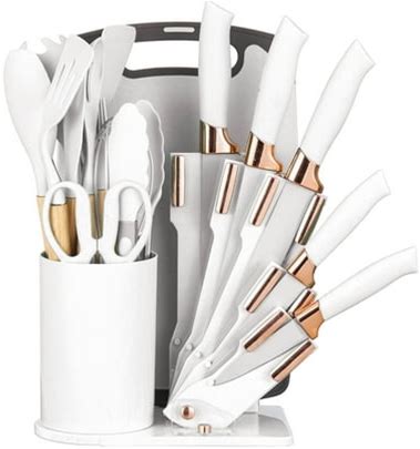 Heesem 19-Piece Silicone Kitchen Utensil & Knife Set - Heat-Resistant Cooking Tools Non-Stick Safe Gift For Mom Or Women White