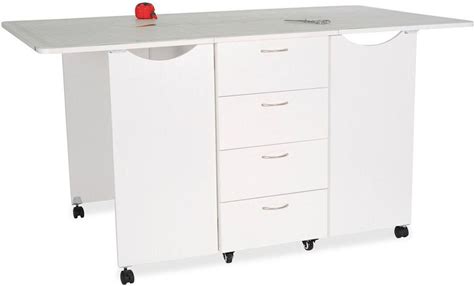 Sew Ready Mobile, Folding, Height Adjustable, Quilting, Fabric Cutting Table With Guides And Grid Top And Storage Silver/White
