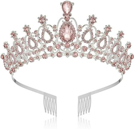 Pink Tiaras And Crowns For Women Girls Crystal Princess Crown With Combs Elegant Queen Tiara Hair Accessories For Birthday Wedding Prom Pageant Hallow