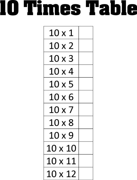 Tables Printable - Times Tables