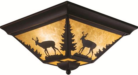 Bryce 14 in. W Bronze Rustic Deer Flush Mount Ceiling Light Fixture