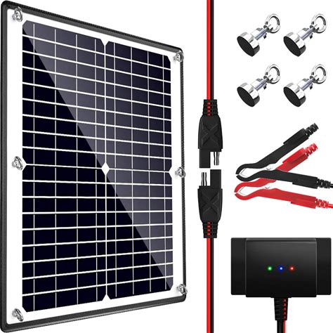 POWOXI Solar Panel Kit 12V 20W Magnetic + Charge Controller Waterproof Solar Battery Charger Maintainer Solar Trickle Charger Alligator Clip For Car Boat RV Motorcycle Marine, Etc.