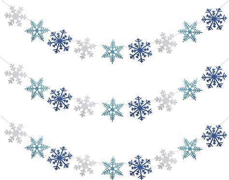 Zonon 3 Pieces Snowflake String Garland Winter Party Decoration White Blue And Light Blue Snowflake Banner Hang Decoration For Christmas Holiday Party